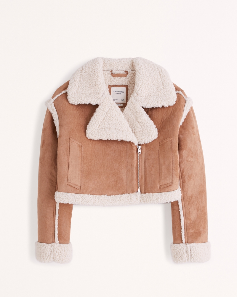 Women's Cropped Vegan Suede Shearling Jacket Women's Coats & Jackets